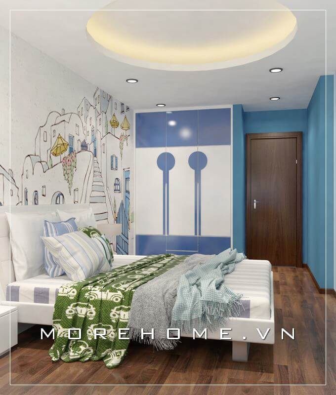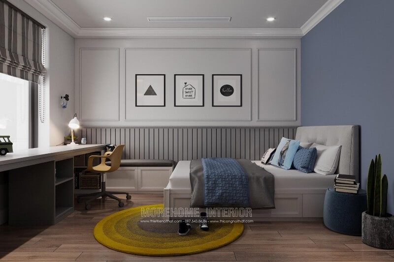 Nội thất phòng ngủ con trai hiện đại, chất liệu gỗ công nghiệp được gia chủ lựa chọn tạo cảm giác thanh thoát và nhẹ nhàng hơn