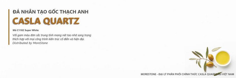 Đá nhân tạo Casla có mã C1102 với gam màu đơn sắc nhẹ nhàng, thanh lịch, phù hợp với cả công trình hiện đại lẫn cổ điển.