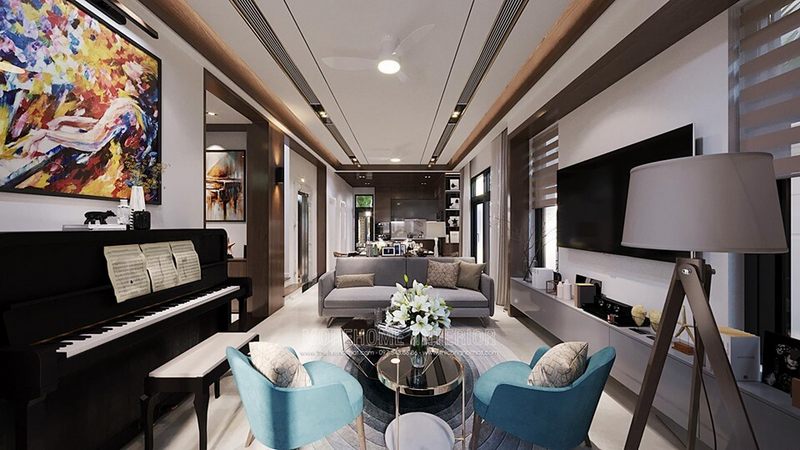 Nội thất hiện đại được thiết kế cho không gian phòng khách tại biệt thự Hà Nội.